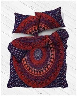Bless International 4ピース羽毛布団カバーセット羽毛布団カバーセット綿100%ウォッシャブルダブルウルトラソフトコンフォーターカバー羽毛カバーセット枕カバー2個付き190x210cmダブルサマーウィンターコンフォーターカバーコージーダブル羽毛布団カバーセイクリッドアブストラクトデザインブルーレッドオンブルマンダラプリント