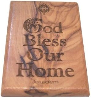 God Bless Our Homeマグネット – Olive Wood ( 6 x 4 cmまたは2.4 X 1.6 ' )