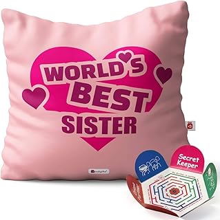 indibni Rakhiギフトfor Brother兄弟妹Cousin世界の妹ハートピンク印刷12 x 12クッションフィラーQuirky bhaidoojing