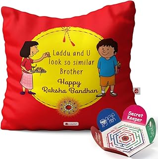 indibni Rakhiギフトfor Brother兄弟妹Cousin Big SisレッドPrinted 12 x 12クッションフィラーQuirky bhaidoojing
