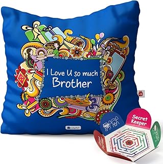 indibni Rakhiギフトfor Brother兄弟妹Cousin Big BrotherブルーPrinted 12 x 12クッションフィラーQuirky bhaidoojing