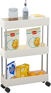 JIUYOTREE 3段狭い収納カート スリムシェルフユニットオーガナイザー キャスター付き キッチン バスルーム ランドリールーム 狭い場所 ホワイト