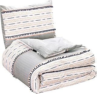 WPM WORLD PRODUCTS MART 3点 ブルー ベージュ グレー 掛け布団 ポンポン付き フリンジ ダウン 代替セット クイーンサイズ 寝具 寝室 寮 部屋 フレンチェスカ (クイーン)