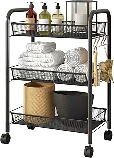 UDEAR 3段 ローリングメタルユーティリティカート ローラーホイール付き モバイルストレージオーガナイザー ブラック