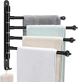 Bowarepro タオルハンガー タオル掛け スイングアーム ステンレス 洗面所 キッチン トイレ タオルバー フック付き 360°回転壁掛け 省スペース(サスペンションロッド 2本)