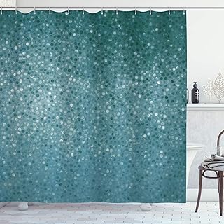 Ambesonne 幾何学模様シャワーカーテン 小さなドットタイル形 シンプルでクラシカルなクリエイティブデザイン 布生地 バスルーム装飾セット フック付き 長さ84インチ エクストラ ティールホワイト