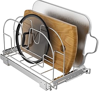引き出し式オーガナイザー クッキーシート カッティングボード ベーキングウェア トレイ 調節可能 キャビネットオーガナイザー キッチンパントリーキャビネット用収納 幅9.25インチ x 奥行き16.9インチ x 高さ10インチ クロム