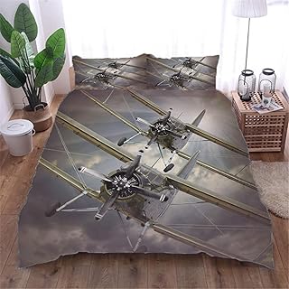 羽毛掛け布団カバー航空機 2つの枕カバー付き3Dプリント寝具セットキルトケース子供ティーンマイクロファイバージッパークロージャー大人キッズキング-230x220cm